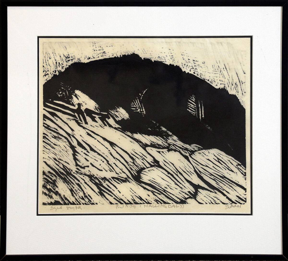 Tresnitt. Eget trykk. 59×50 cm, signert nede til høyre. Innrammet. I tillegg til prisen kommer 5% Kunstavgift.